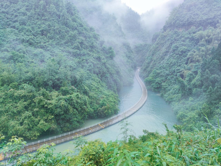 狮子关水上浮桥,500米的浮桥横跨水面,开车慢过,游于山水间。