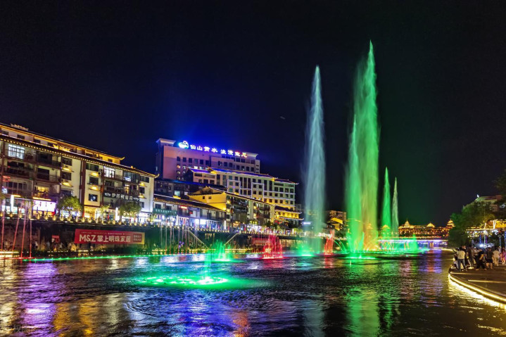 山清水秀、空气清新。贡水河夜景,晚上8点准时亮灯,沿河走走太惬意。