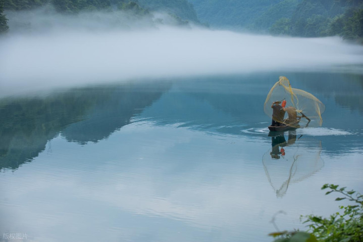 小东江看渔夫在晨雾中撒网,感受郴州独一份的水墨仙境。白廊欣赏一望无际的碧蓝湖水。