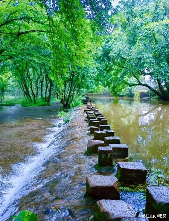 网红木桥&石墩步道,朋友圈爆款,丰乐河上的木质长桥,站桥上拍全景超有感觉,走石墩过溪,水漫脚踝,清凉又出片。